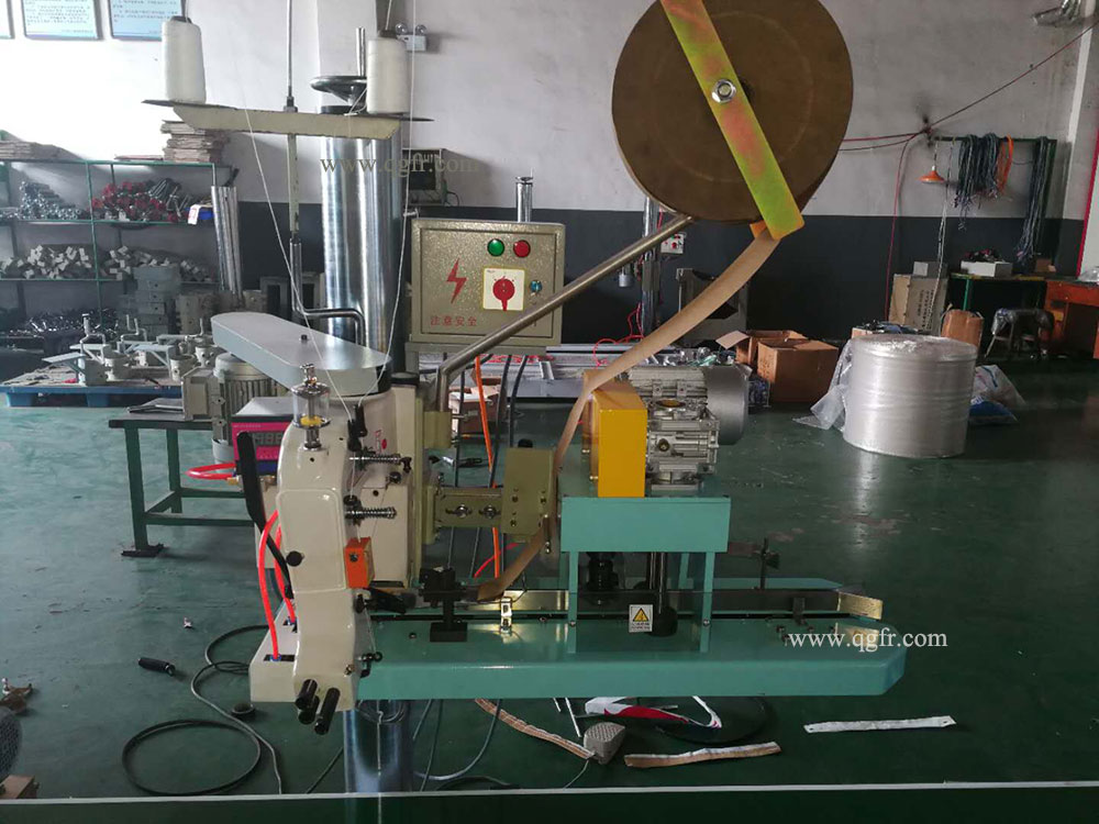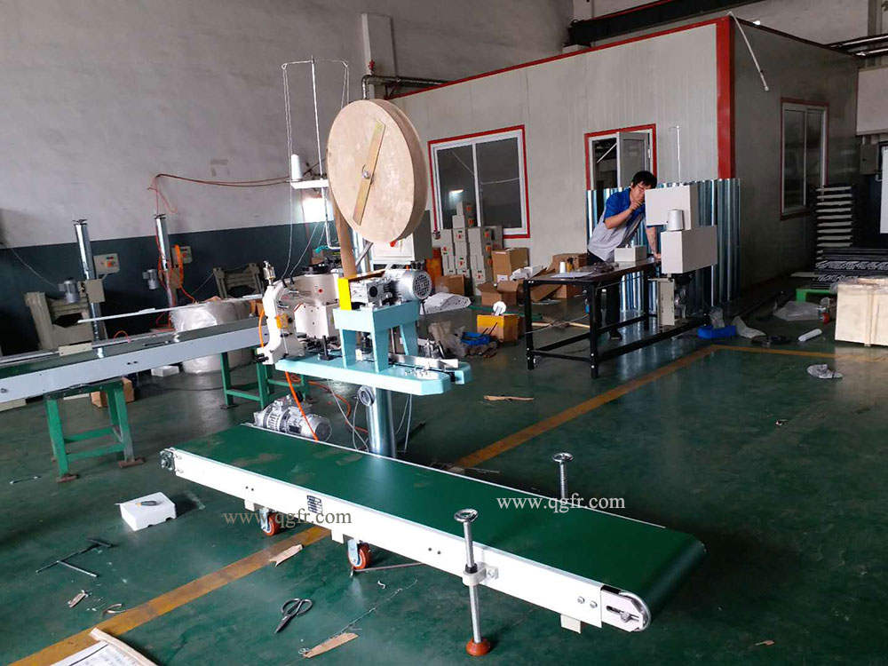 You can make up a complete set as you like for example LFS2500+(QG4900-3)+(GK35-6A) which is constituted by a 2.5m conveyor, GK35-6A sewing head, QG4900-3 bags infeed and trimming device, a column and its control box.