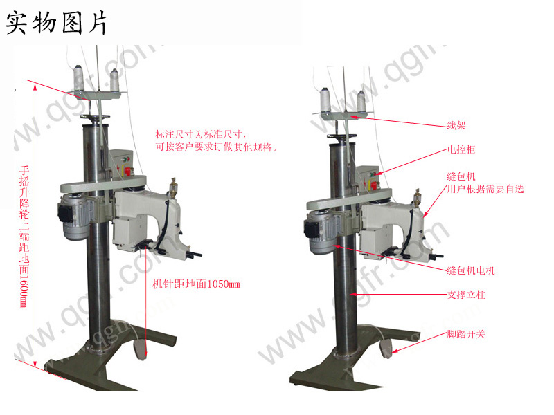 SZ-1 Cylindrical Column is support device for bag closing machine head. Constituted by a sewing head, a column, motor for the sewing head, and electrical equipment, it can work together with conveyor to complete the bag stitching assignments. The height of sewing head can be manually adjusted so as to meet different bag height.