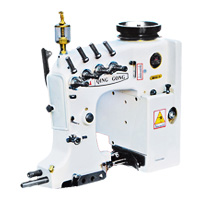 DS-9C Heavy Duty Bag Closing Machine: The fastest single needle bag closing machine (2700 rpm) for all kinds of filled bags. Well-balanced rotational parts ensure very little vibration. Ideally suited for use with height-speed bag filling lines where conveyor speed of 25m/min. All parts are protected against the effects of dust. A unique but simple enclosed oil bath lubrication system greatly extends the life of moving parts and reduces maintenance costs. Model DS-99 is equipped with pneumatic guillotine type crepe-tape cutter.