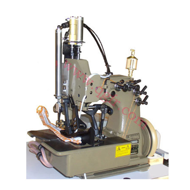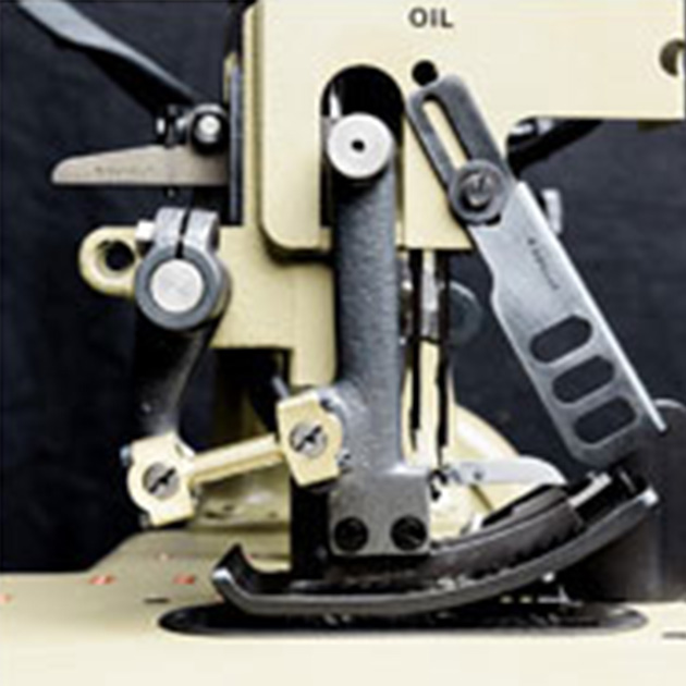 81300 Heavy duty FIBC sewing machine: Heavy duty two needle, four thread safety stitch machine with high needle throw. With top and bottom feed for matched seams on heavy bag fabric. Needle distance 5mm, overedge seam width 19 mm, seam width overall 24 mm. With guide for filler cord from the top and / or below for sealing the needle punctures of the left needle. Electro-pneumatically operated presser foot and upper feed dog lifter. Pneumatic presser foot spring. With built-in electro-pneumatically operated hot thread chain cutter left of the needle for separating the thread chain from below.