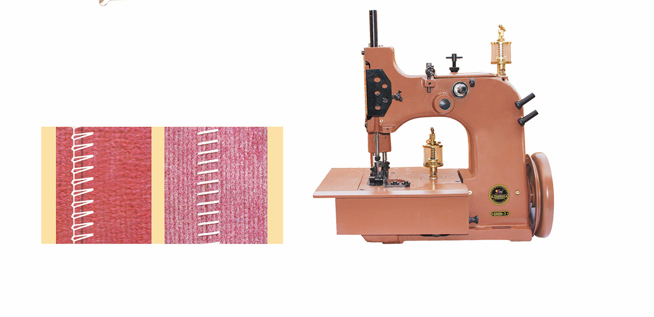 GN20-1 Piece End Joining Machine: single needle, single thread piece-end joining sewing machine. It is designed for secondary joining by sewing together the ends of all kinds of materials such as fabric rolls and felt type products (before processing in Dyeing and Printing works) and even on the heaviest carpeting with thick backing.