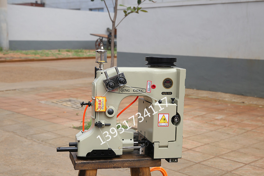 工作過程:裝配在輸送機上,當裝滿物料的編織袋到達離縫包機10厘米處,在光控開關(guān)控制下縫包機自動啟動,縫合袋口,縫好每一袋時,切刀自動剪斷線辮,縫包機自動停機。