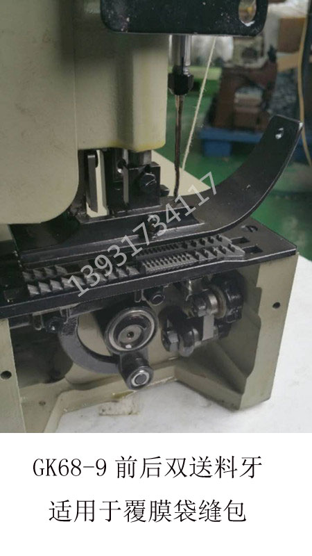 GK68-9型覆膜袋自動縫包機集自動開機、自動停機、自動剪線于一體,并且在原GK35-6A自動縫包機的基礎上改進了切刀結(jié)構(gòu),采用內(nèi)藏式可調(diào)切刀,可切斷大寬度包邊紙。切刀位置可以調(diào)整,減少了切刀磨損后的更換頻率。同時GK68-9采用雙壓腳,雙送料牙,強勁可靠的送料能力特別適用于編織袋雙面覆膜或者折邊等可能造成縫合過程中打滑、送料遲滯的情況。